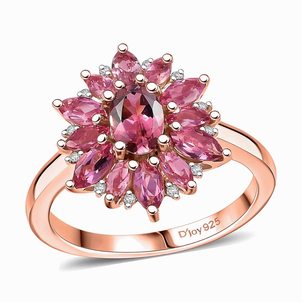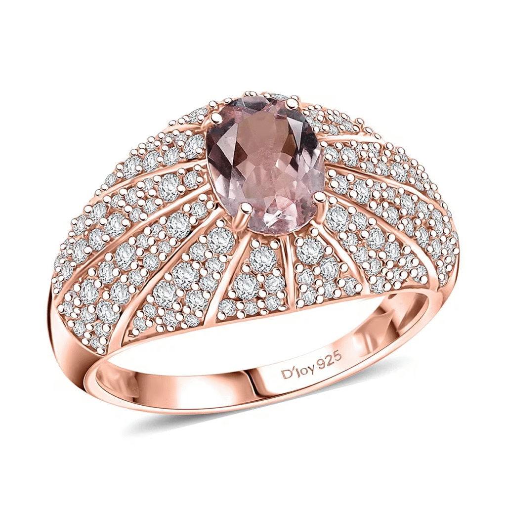 Superior 18K vermeil rose gold over sterling silver is used to expertly craft the D’Joy Pink Diamond Ring, guaranteeing both luxury and longevity. While offering the look and feel of solid gold at a lower cost, the 18K vermeil coating adds a rich, warm, and radiant glow. The ring’s structural integrity is improved by the sterling silver base, which offers a strong and durable foundation.